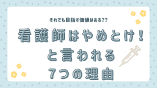 看護師【本音】看護師はやめとけと言われる7つの理由|それでも目指す価値はある? 「看護師はやめとけ!」これから看護学校へ進学を考えている人、転職を検討している人なら、一度は目にしたことがある言葉ではないでしょうか。給料が高い、安定していると言われる一方で、「きつい」「辞めたい」という声も多いのが看護師という仕事です。こ... 2026.02.20看護師